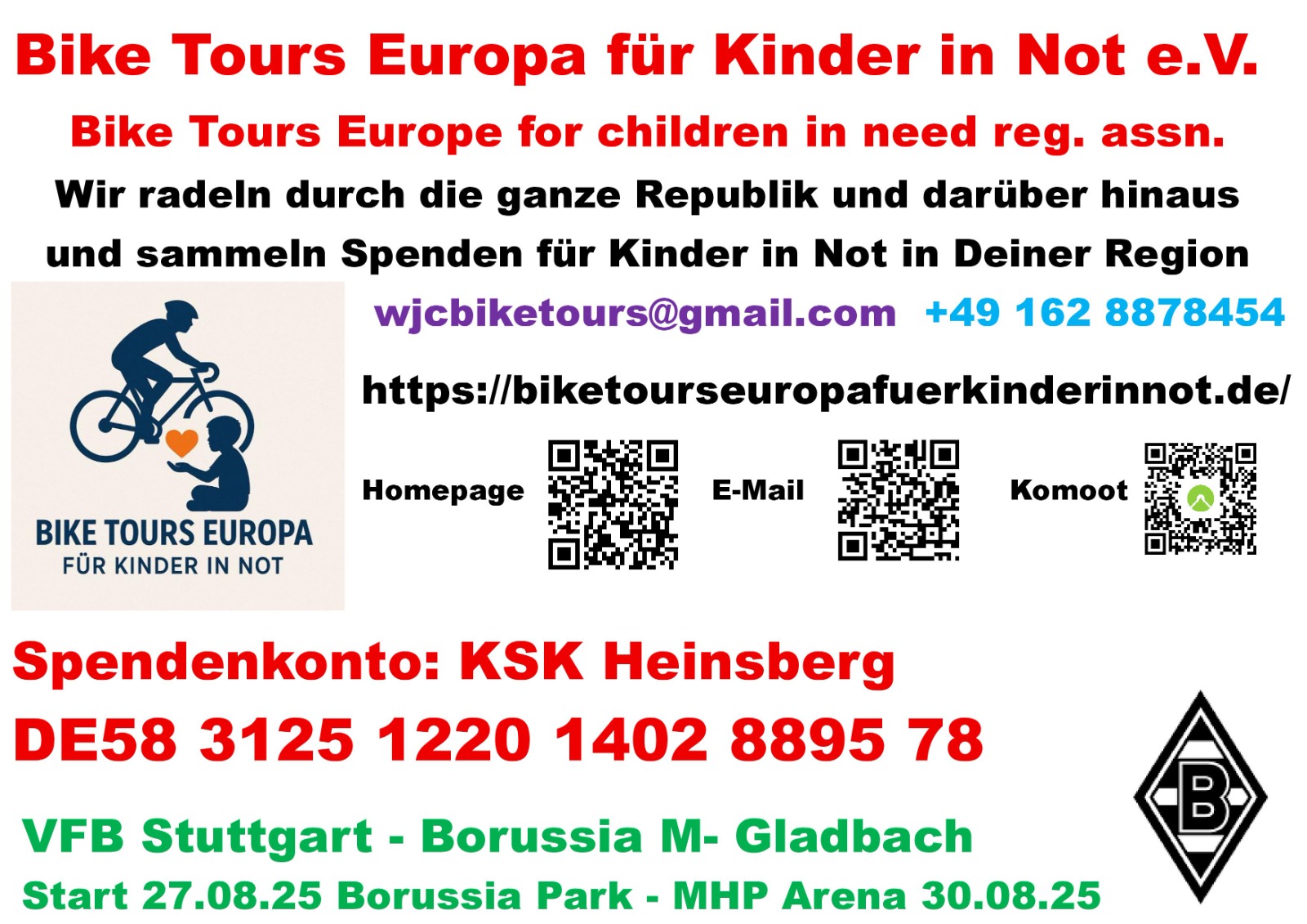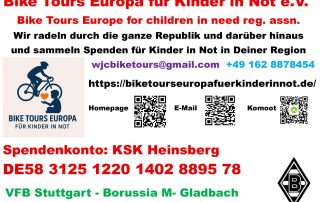 Unser Mitglied Willi Corsten möchte seine freie Zeit als Rentner sinnvoll nutzen und auf Radtouren zu allen Auswärtsspielen Spenden sammeln für Kinder in Not. Das möchten wir unterstützen und machen euch deshalb hier auf seine Aktion aufmerksam. Man kann natürlich ... mehr